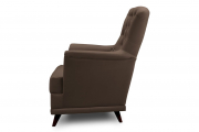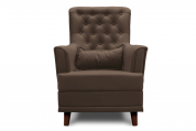 Ножки кресла изготовлены из массива березы, поэтому выдерживают хороший вес. Сиденье сделано толстым - отдыхать на нём вдвойне приятно. Чтобы создать ещё большее удобство, мы сделали широкие подлокотники. На них можно положить руки и наслаждаться отдыхом, просматривая любимое кино или читая книгу. Для придания стильных ноток, на спинке расположены пуговицы. Они создают дополнительный шарм мебели.