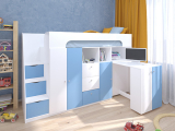 Кровать-чердак "Астра 11" белый/голубой