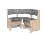 Набор мебели для кухни, включающий в себя угловую скамью, стол и два табурета. В угловой скамье под сиденьями расположены два ящика. Каркас ЛДСП. Покрытие верхней части столешницы стола - ЛДСП, кромка ПВХ - 1мм. В целях безопасности и придания лучшего эстетического вида углы столешницы закруглены. Современная комбинация цветов обивки и декора.