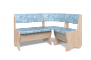 Набор мебели для кухни, включающий в себя угловую скамью, стол и два табурета. В угловой скамье под сиденьями расположены два ящика. Каркас ЛДСП. Покрытие верхней части столешницы стола - термостойкий пластик, кромка ПВХ 1 мм. Современная комбинация цветов обивки и декора.
